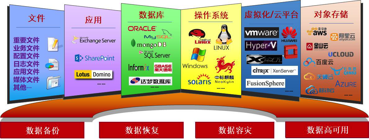 數(shù)據(jù)保護(hù)方案,將數(shù)據(jù)備份系統(tǒng)集合了數(shù)據(jù)備份、數(shù)據(jù)容災(zāi)、數(shù)據(jù)高可用等功能的企業(yè)級(jí)數(shù)據(jù)安全保護(hù)平臺(tái),支持多租戶的共享使用,以及本地和云端數(shù)據(jù)的協(xié)同,保護(hù)企業(yè)的操作系統(tǒng)、數(shù)據(jù)庫(kù)、應(yīng)用、文件、虛擬機(jī) 、對(duì)象存儲(chǔ) 等數(shù)據(jù),
