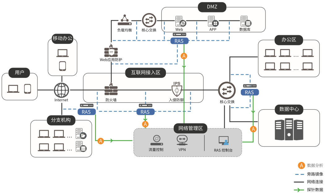 網(wǎng)絡承載了越來越多的關鍵業(yè)務和應用,在大數(shù)據(jù)、云計算等新興的網(wǎng)絡應用和網(wǎng)絡架構中,IT運維人員面臨全新的挑戰(zhàn)。隨時面臨著因網(wǎng)絡故障而導致的業(yè)務中斷、經(jīng)濟損失等各種不可預知的風險。網(wǎng)絡架構越來越復雜,依靠個人經(jīng)驗的運維方式難以為繼,因此新形勢下的IT運維需要更加智能、高效。針對這些情況提出了全網(wǎng)流量回溯分析解決方案,集成大容量存儲的高性能數(shù)據(jù)包采集和智能分析軟硬件一體化平臺,可以分布式部署在網(wǎng)絡的關鍵節(jié)點,支持對物理網(wǎng)絡和云網(wǎng)絡流量的采集分析。以關鍵應用為中心,實現(xiàn)對應用的網(wǎng)絡訪問性能、系統(tǒng)服務性能、應用響應性能等關鍵性能指標的智能分析。同時還可實時捕獲并保存網(wǎng)絡通訊流量,具備對長期網(wǎng)絡通訊數(shù)據(jù)進行快速數(shù)據(jù)挖掘和回溯分析能力。實現(xiàn)對關鍵業(yè)務系統(tǒng)中的網(wǎng)絡異常、應用性能異常和網(wǎng)絡行為異常的秒級發(fā)現(xiàn),以及區(qū)分異常原因的智能回溯分析,提升了對關鍵業(yè)務系統(tǒng)的運行保障能力和問題處置效率。